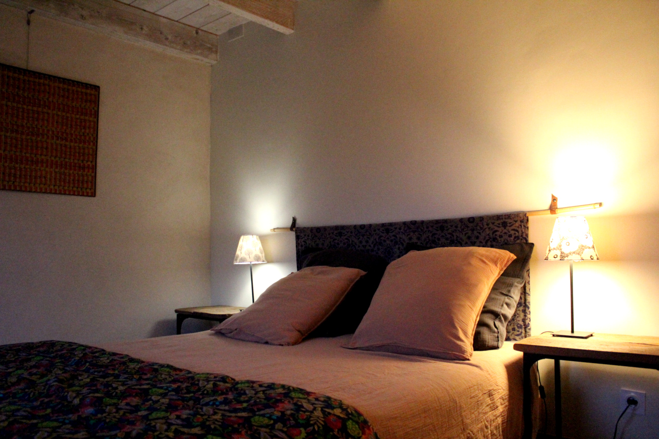 Un lit ’queen size’ de 160 vous accueille dans la chambre du rez de jardin et deux lits simples à l’étage attendent les dormeurs. La literie est récente, et le mobilier est prêt à recevoir vos effets.